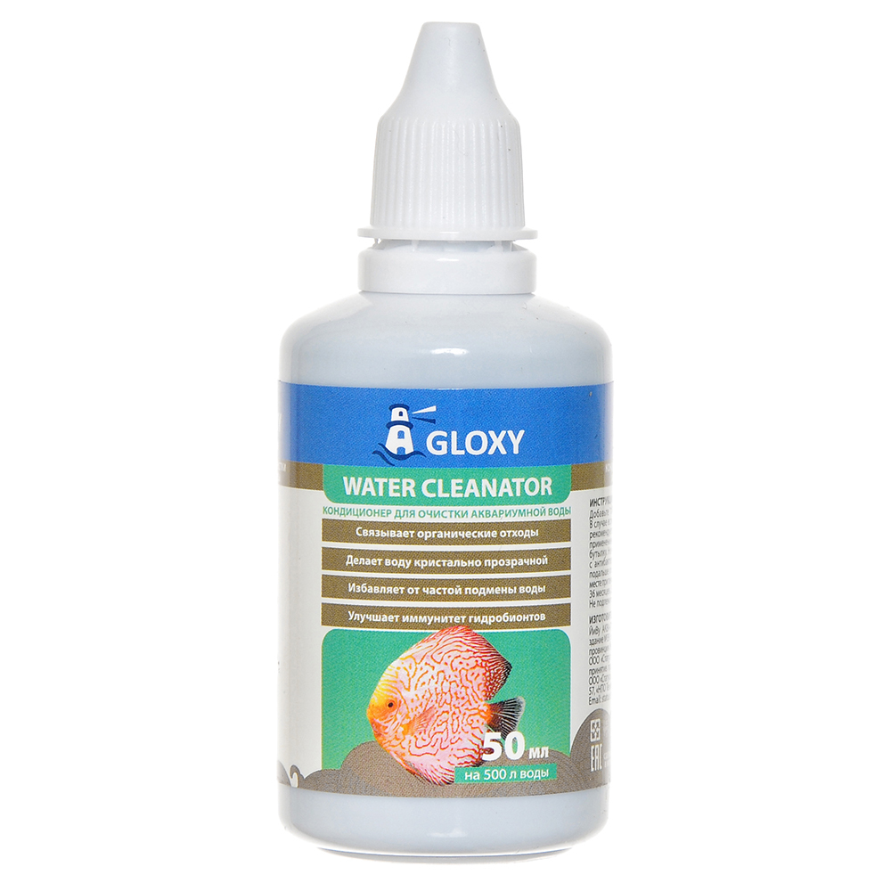 Кондиционер для очистки аквариумной воды Gloxy Water Cleanator cвязывает органические отходы, делает воду кристально прозрачной, избавляет от частой подмены воды и улучшает иммунтитет гидробионтов.